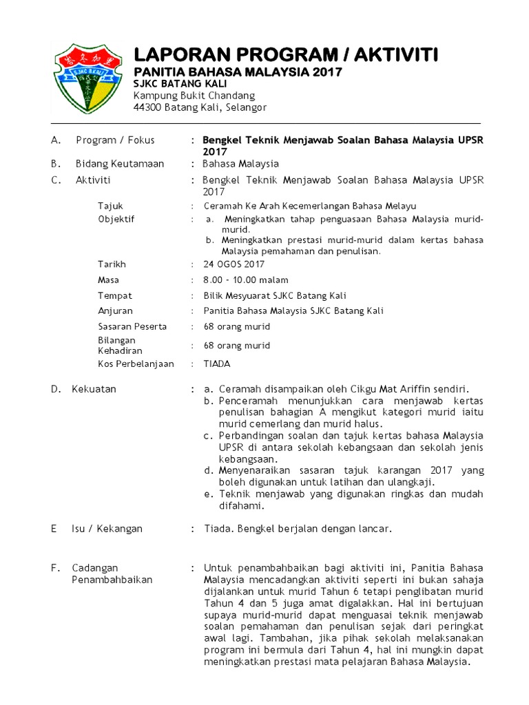 Nama program objektif bengkel menjawab soalan upsr 2017 31 32 33 34. Membuat laporan dengan menggunakan bahan bukti. Anda sebagai setiausaha persatuan itu dikehendaki menulis satu laporan lengkap tentang lawatan tersebut.