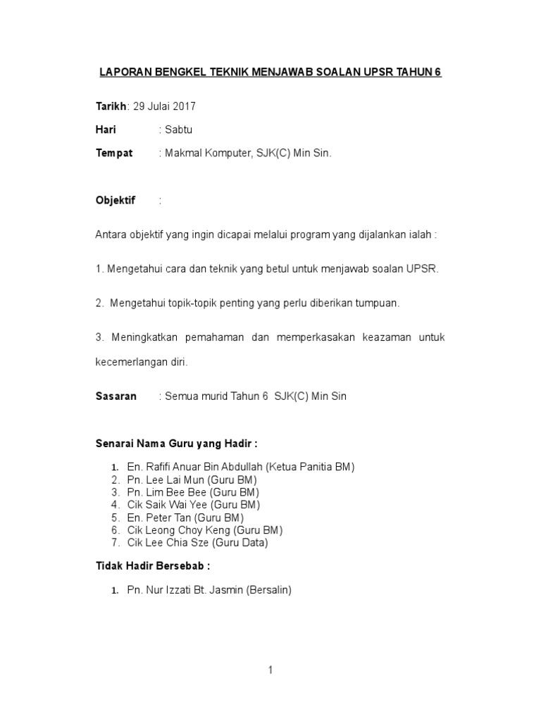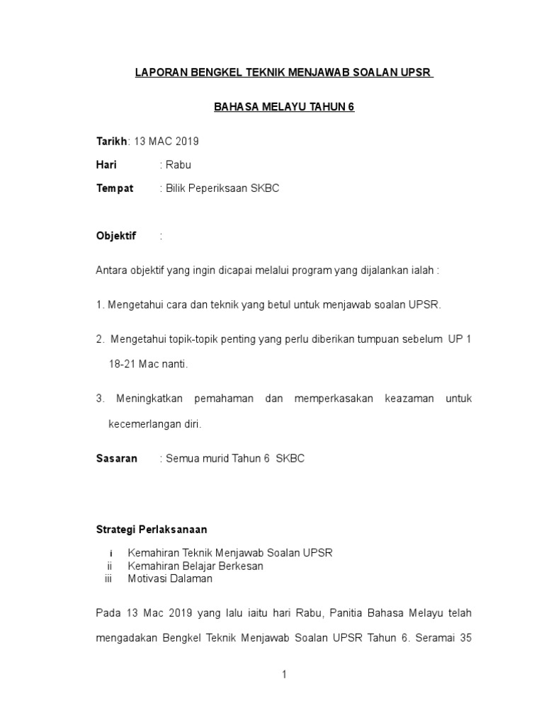 Laporan Bengkel Teknik Menjawab Upsr Bm 2017 Pdf