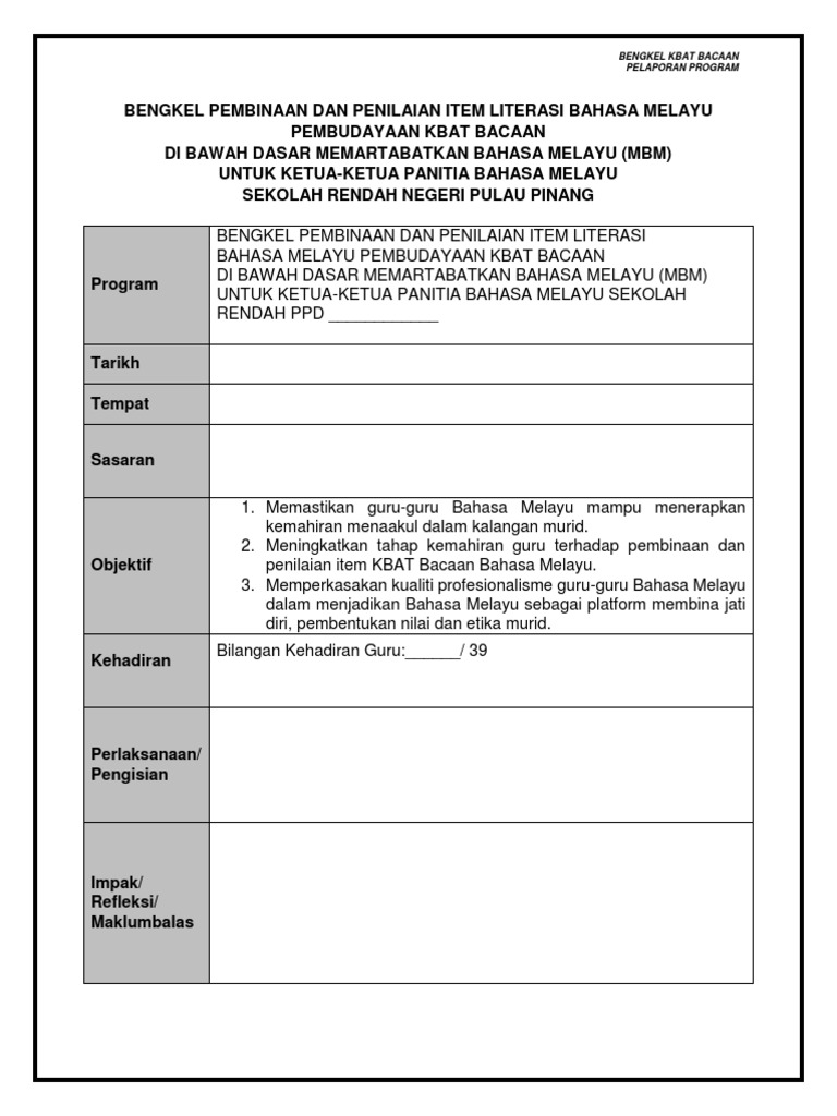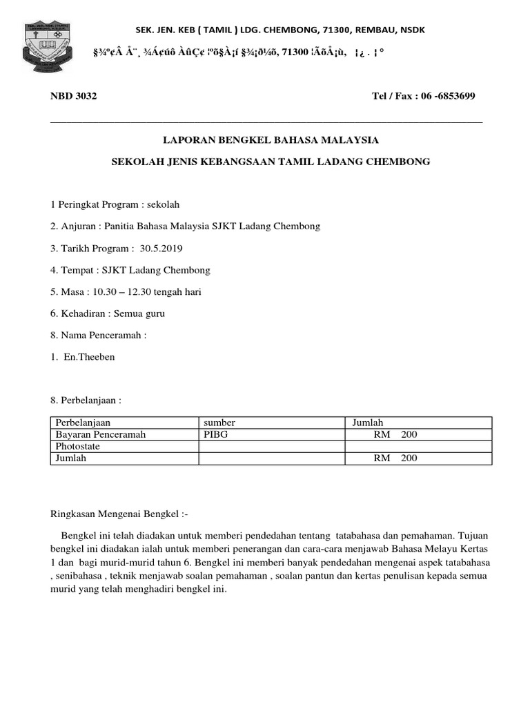 Laporan Bengkel Bahasa Malaysia Pertama 2019 Pdf